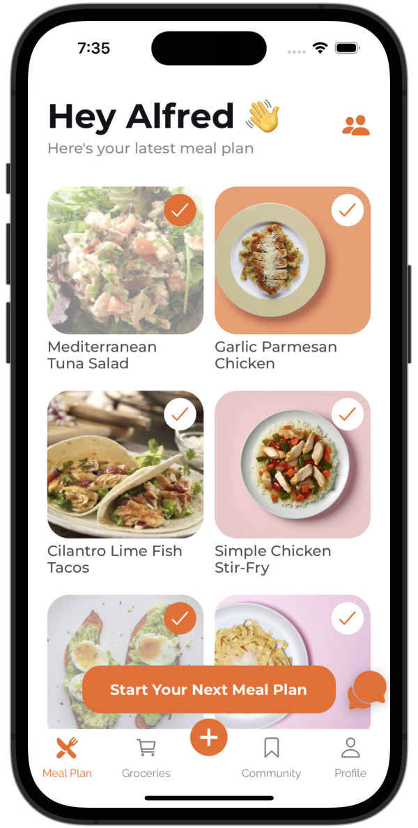 Skip the stress of decision-making. Generate a full week of meals and a shopping list in one click.